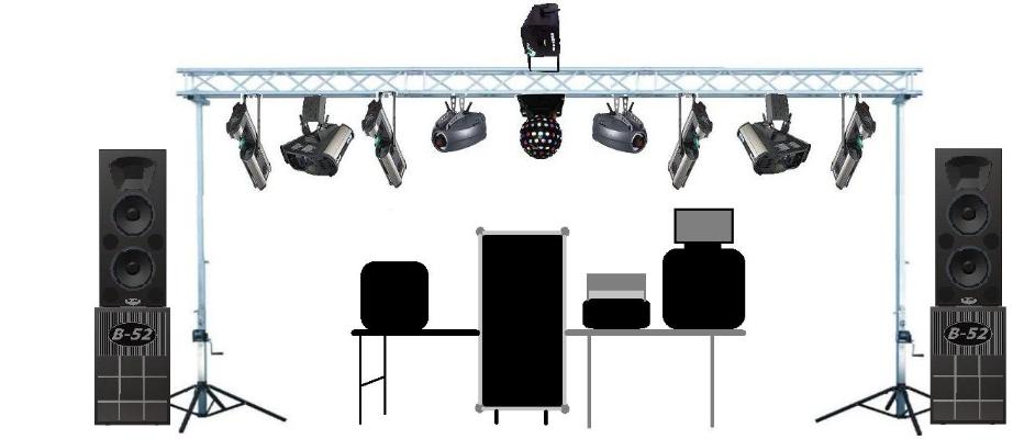 | Minimum set-up space requirements is 6' deep by 10' long. Premium DJ System |